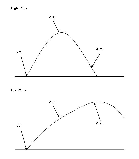 逆にAD0のほうが大きければ2200Hzと判断できます。